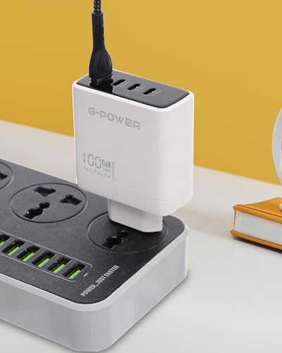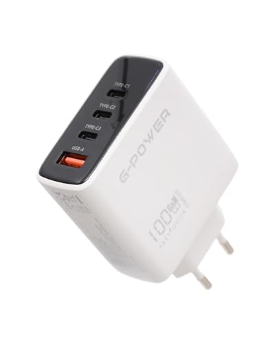 G-Power GP-C17 100W 4-Port Charger (USB-A and 3USB-C) Qualcomm Quick Charge 3.0 Compatible with MacBook Pro, iPad, Galaxy, Pixel, iPhone and More - White Black